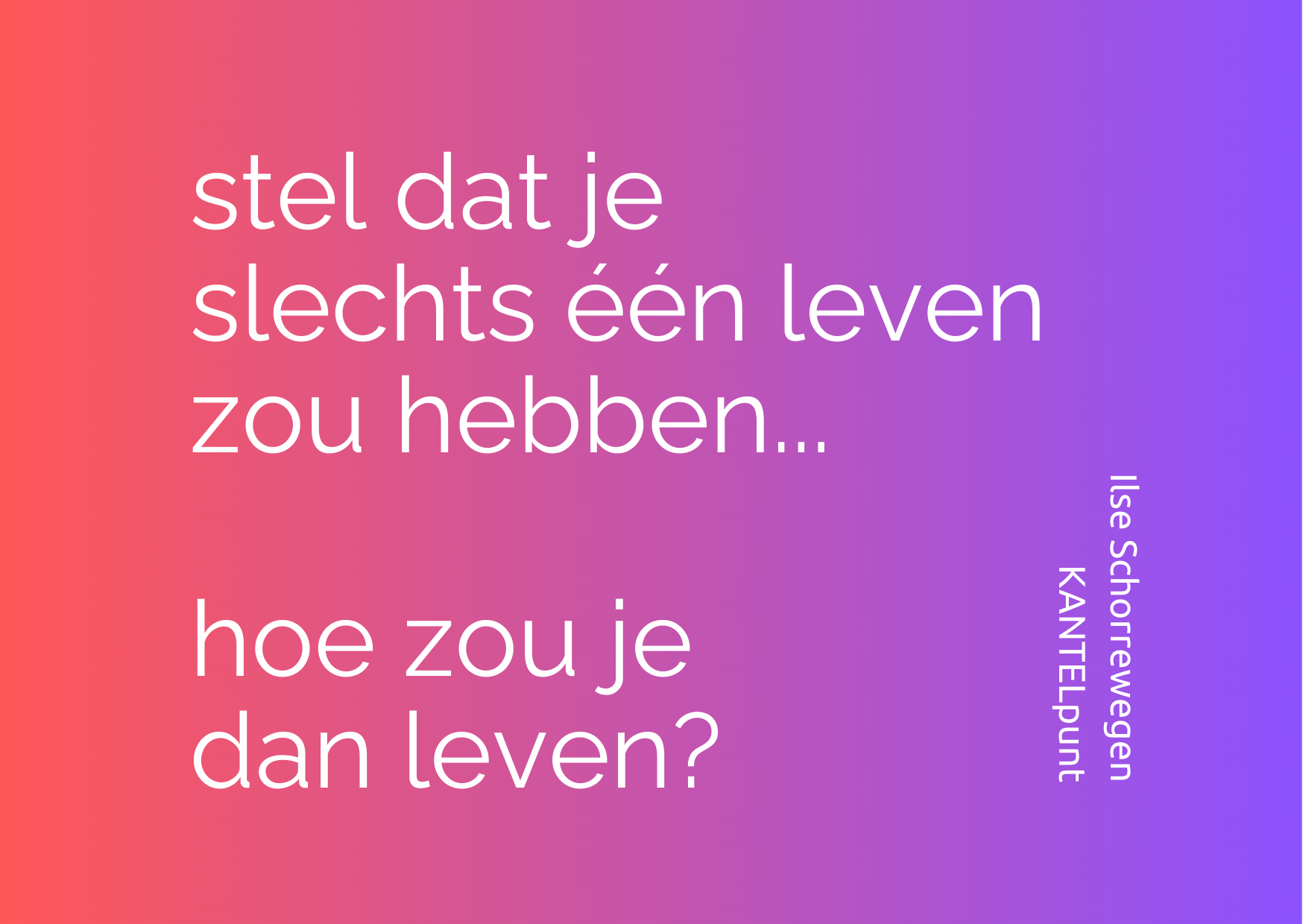 Ilse liet me inzien dat er eigenlijk nog iets veel fundamenteler en belangrijker is dan 'het vinden van een loopbaan die bij je past'. Namelijk het leiden van een leven.